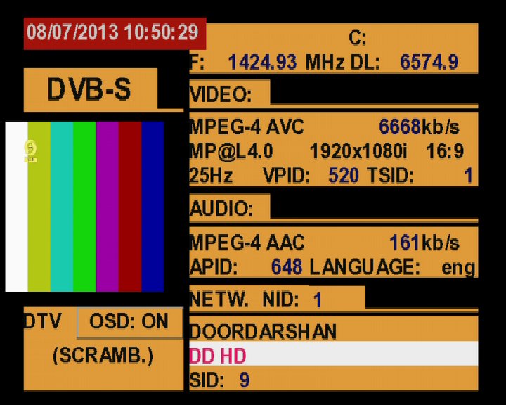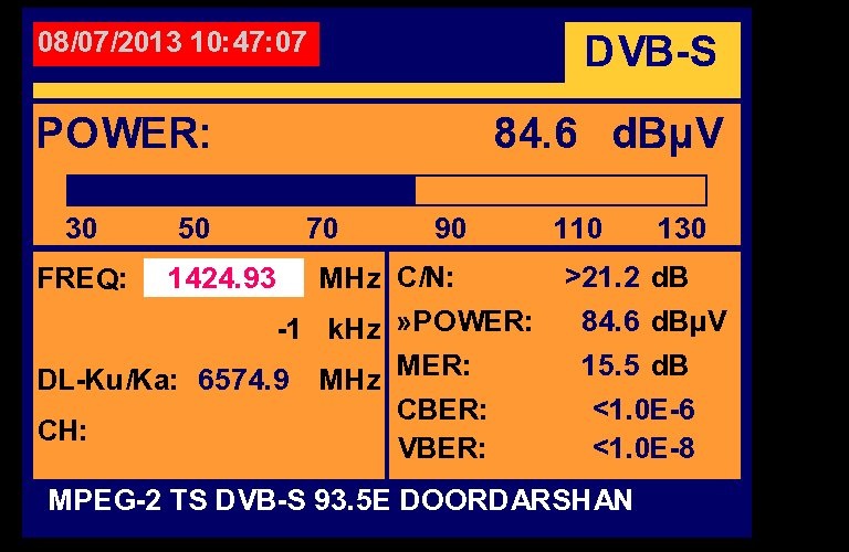 3 725 @ 1 424 MHz @ SPAN 100 MHz : 93.5°E Doordarshan India