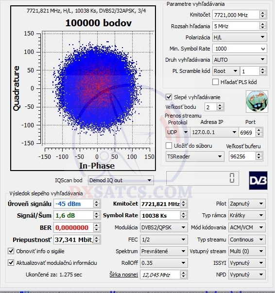 vysielania/paketu na f=3 551 MHz zo satelitu Thaicom 5 na λ=78.5° vd týmto demonštruje aj v praktických meraniach :