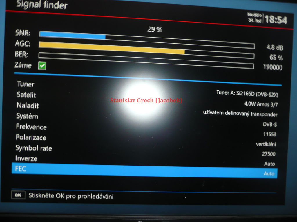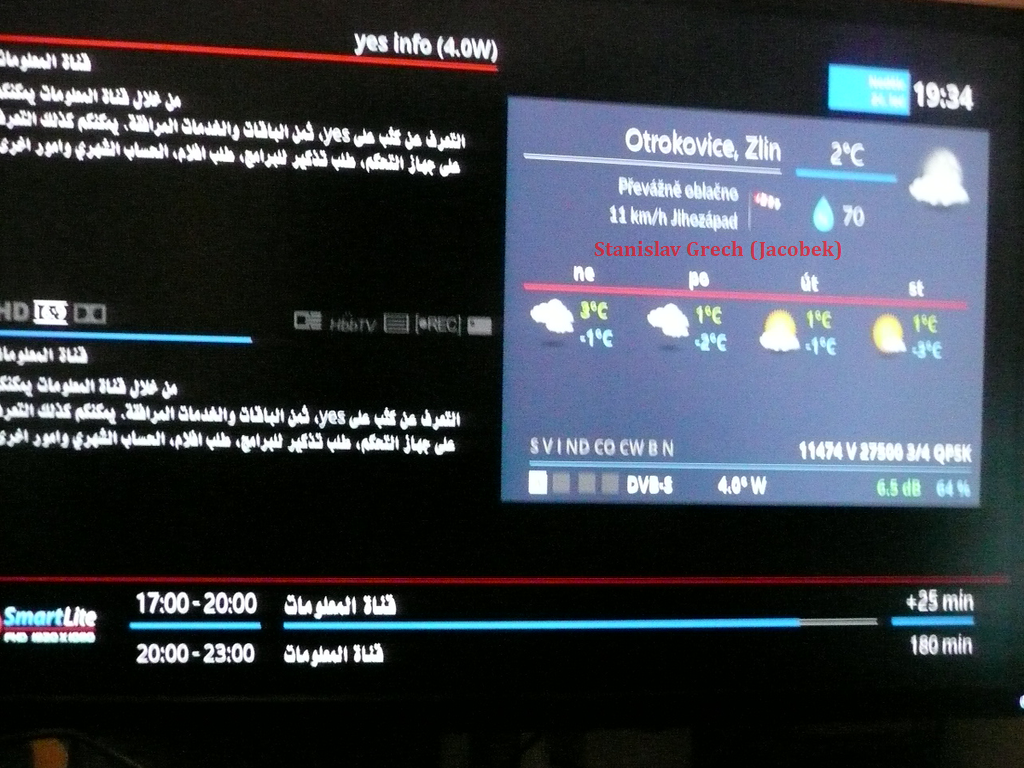 MIDDLE EAST V+H družíc AMOS 3/7 na 4,0°W s parabolou PRODELIN 3,7m v oblasti strednej Moravy-Zlínsko .