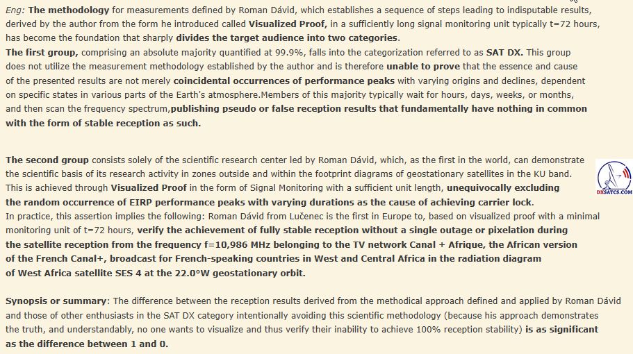 očakávaniam.Antimetodické a zavádzajúce postupy sa dominantne a už desiatky rokov uplatňujú v amatérskej kategorizácii satelitného príjmu