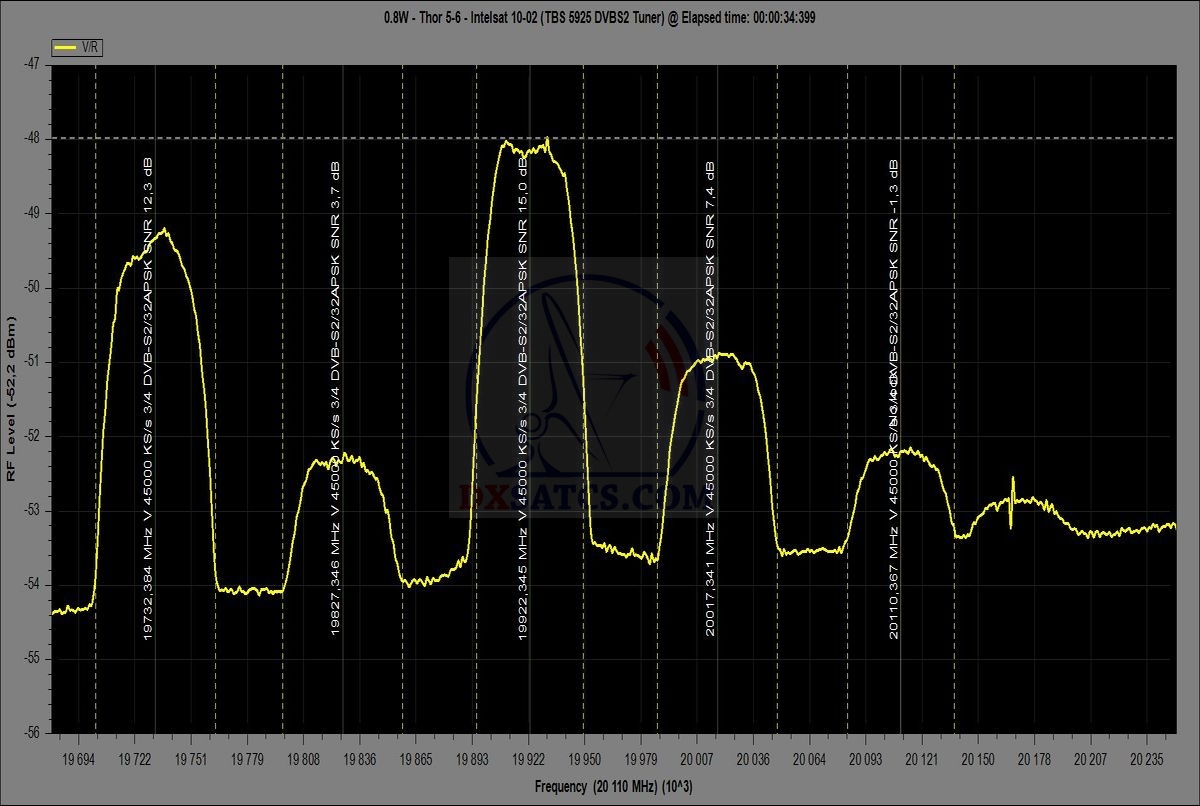 14.7.2015 : Prvá analýza rozsahu spektra KA-pásma od 19,7 do 20.2 GHz geostacionárneho objektu Thor 7,ktorý z pozície λ=0,8° zd
