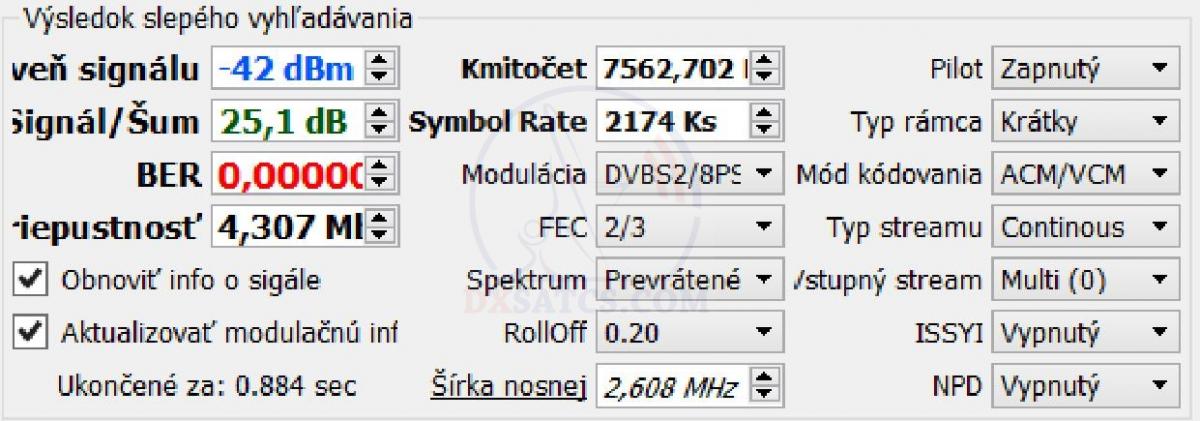 elm. vlnení vo frekvenčnom spektre od 7250 do 7 750 MHz a publikovaniu modulačných parametrov niektorých dátových paketov,