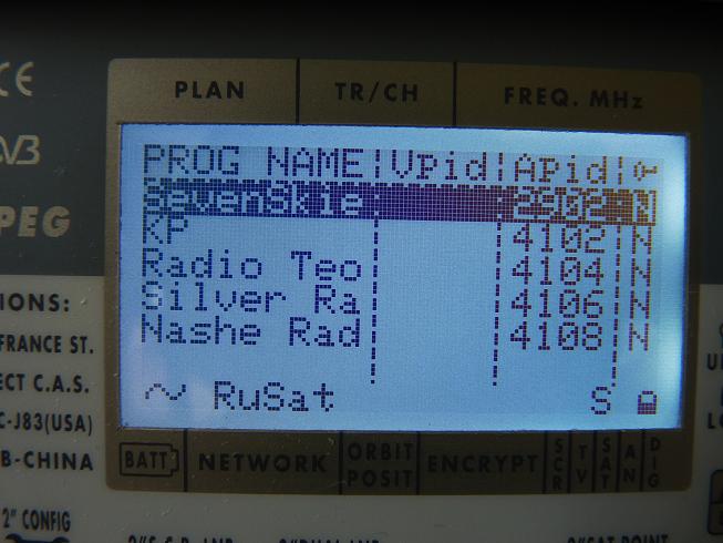 RuSat radio network | 18 200 | 5/6 | 201 KU | 120-140+ cm | DVB |