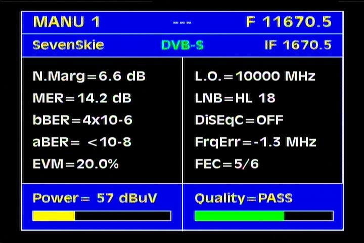 Yamal 201 at 90.0°E : 11 057 V Gazprom network _ MER=11.3 dB _ NM=4.8 dB